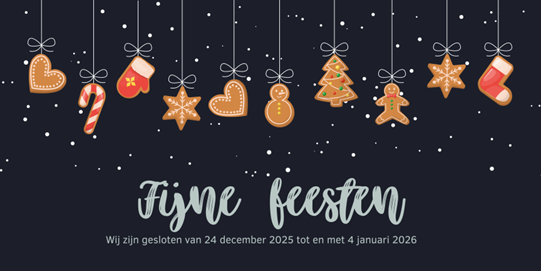 Wij zijn in Erpe-mere gesloten van 24 december 2025 tot en met 4 januari 2026 , in Putte van 22 december tot en met 5 januari en in Aalter van 20 december tot en met 6 januari.